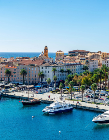 Set sail from Brittany to Ajaccio, the imperial city tucked away on the west coast of Corsica. With its sandy beaches, turquoise-watered bay, and mountains as a backdrop, Ajaccio offers a complete change of scenery. The birthplace of Napoleon Bonaparte, it charms visitors with its historical heritage, warm Mediterranean atmosphere, and authentic Corsican cuisine. Discover the charms of Ajaccio and start planning your trip now to enjoy the sun and the island's dolce vita.